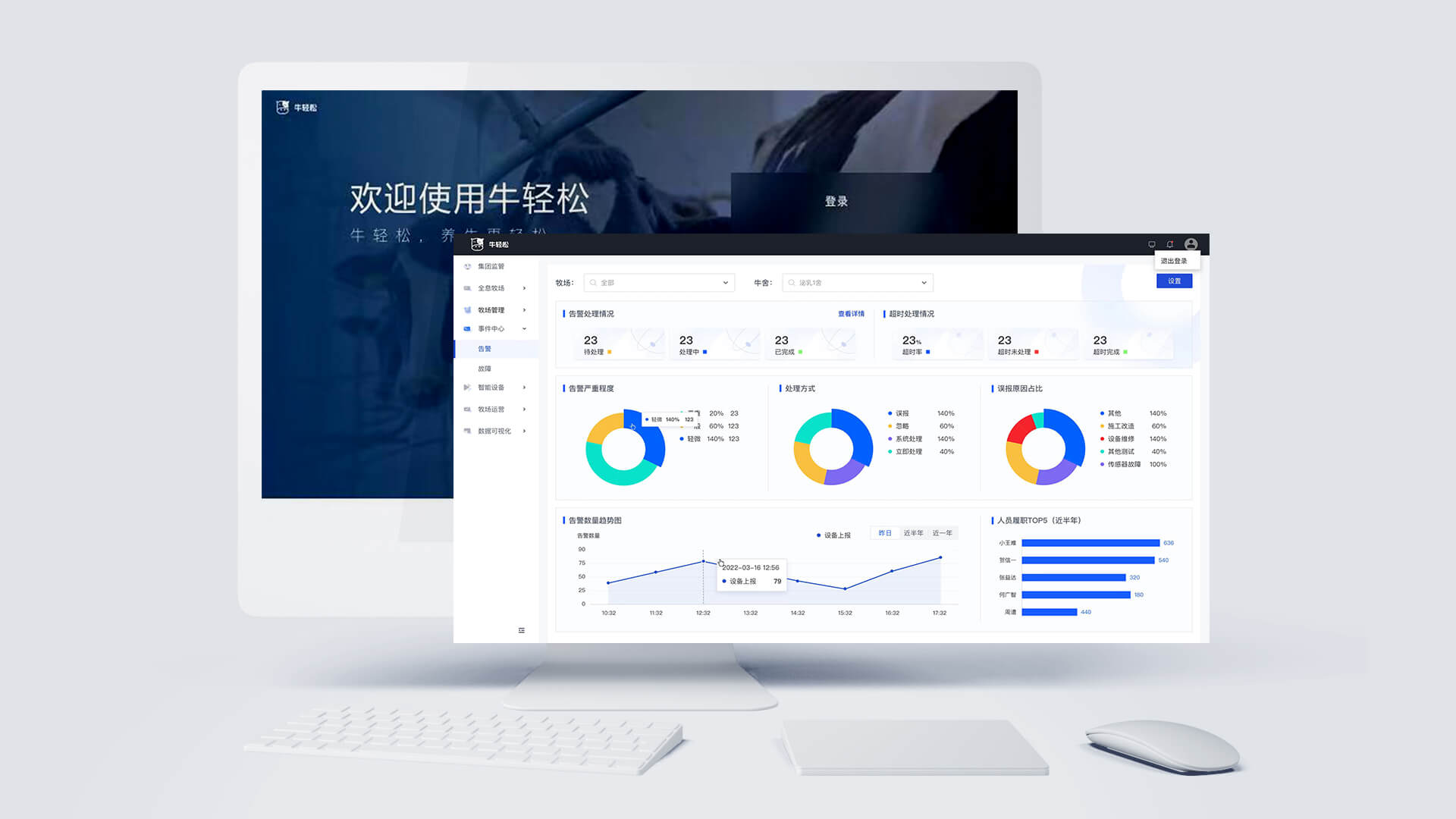 牛輕松對(duì)牧場(chǎng)的智能風(fēng)機(jī)系統(tǒng)、噴淋系統(tǒng)、視頻監(jiān)控系統(tǒng)、智能照明系統(tǒng)、能源監(jiān)測(cè)系統(tǒng)、環(huán)境監(jiān)測(cè)系統(tǒng)、工單系統(tǒng)等進(jìn)行統(tǒng)一的管理與聯(lián)動(dòng)配置。產(chǎn)品的應(yīng)用實(shí)現(xiàn)牧場(chǎng)內(nèi)所有設(shè)備的一鍵全連、協(xié)同聯(lián)動(dòng)及可視化管理,輔助牧場(chǎng)能夠綠色的、高效的、可持續(xù)盈利的長(zhǎng)足發(fā)展。